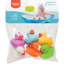 Kit com 6 patinhos para diversão na hora do banho. Possuem furinho na boca para esguichar água.